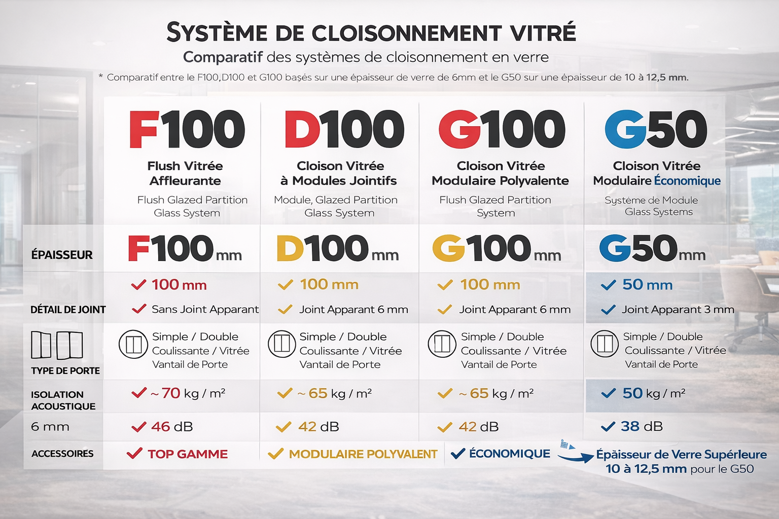 Une gamme complète de cloisons vitrées professionnelles, alliant design architectural, performance acoustique et modularité pour tous vos projets tertiaires.