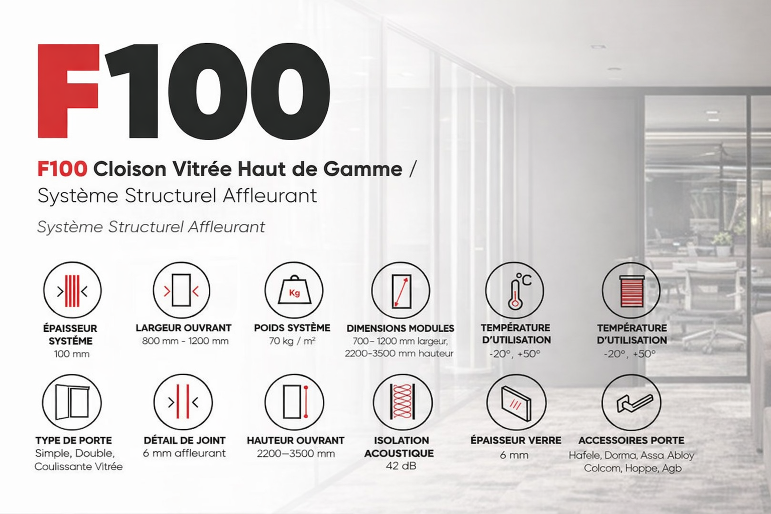 Le système F100 – Cloison vitrée Railings Design est une solution structurelle innovante permettant de créer des espaces entièrement vitrés, sans cadre apparent.